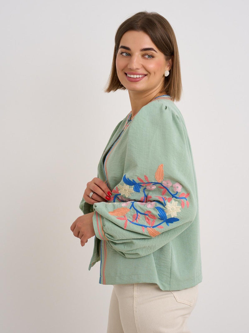 Embroidery Sleeve Jacket - Green