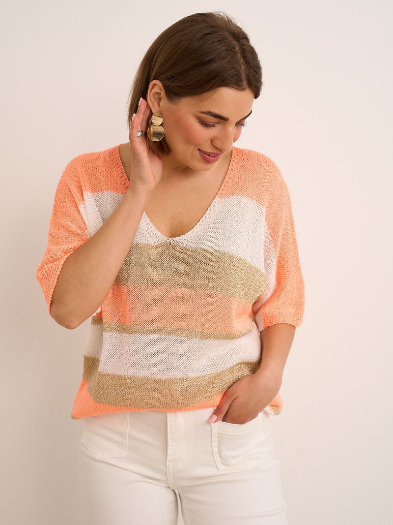 Lurex Stripe Top - Coral