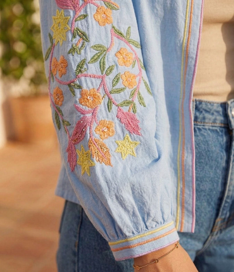 Embroidery Sleeve Jacket - Blue