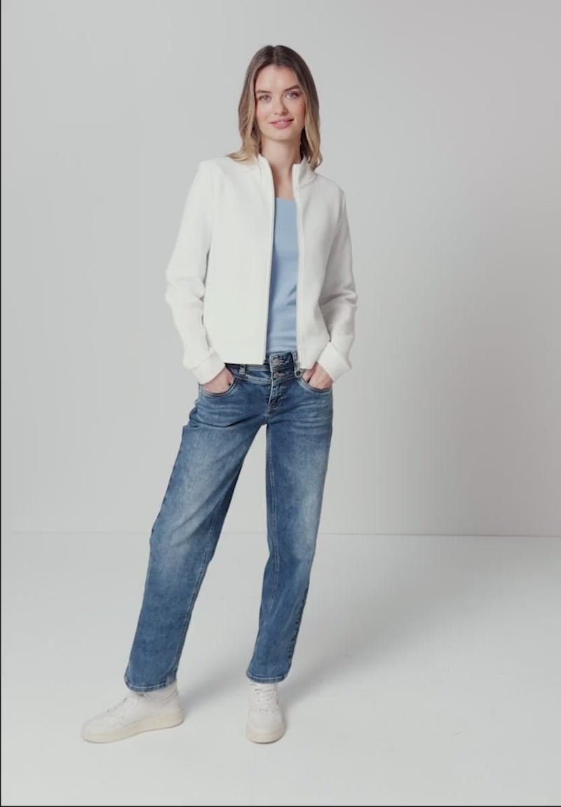 The Street One zip-up jacket scores points with its sporty look and comfortable feel. Made from pure cotton, this lightweight sweatshirt is particularly comfortable and a favorite for your everyday looks. The zipper and side pockets not only complete the jacket's appearance but also make it a practical everyday companion.