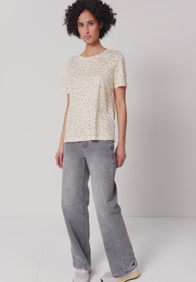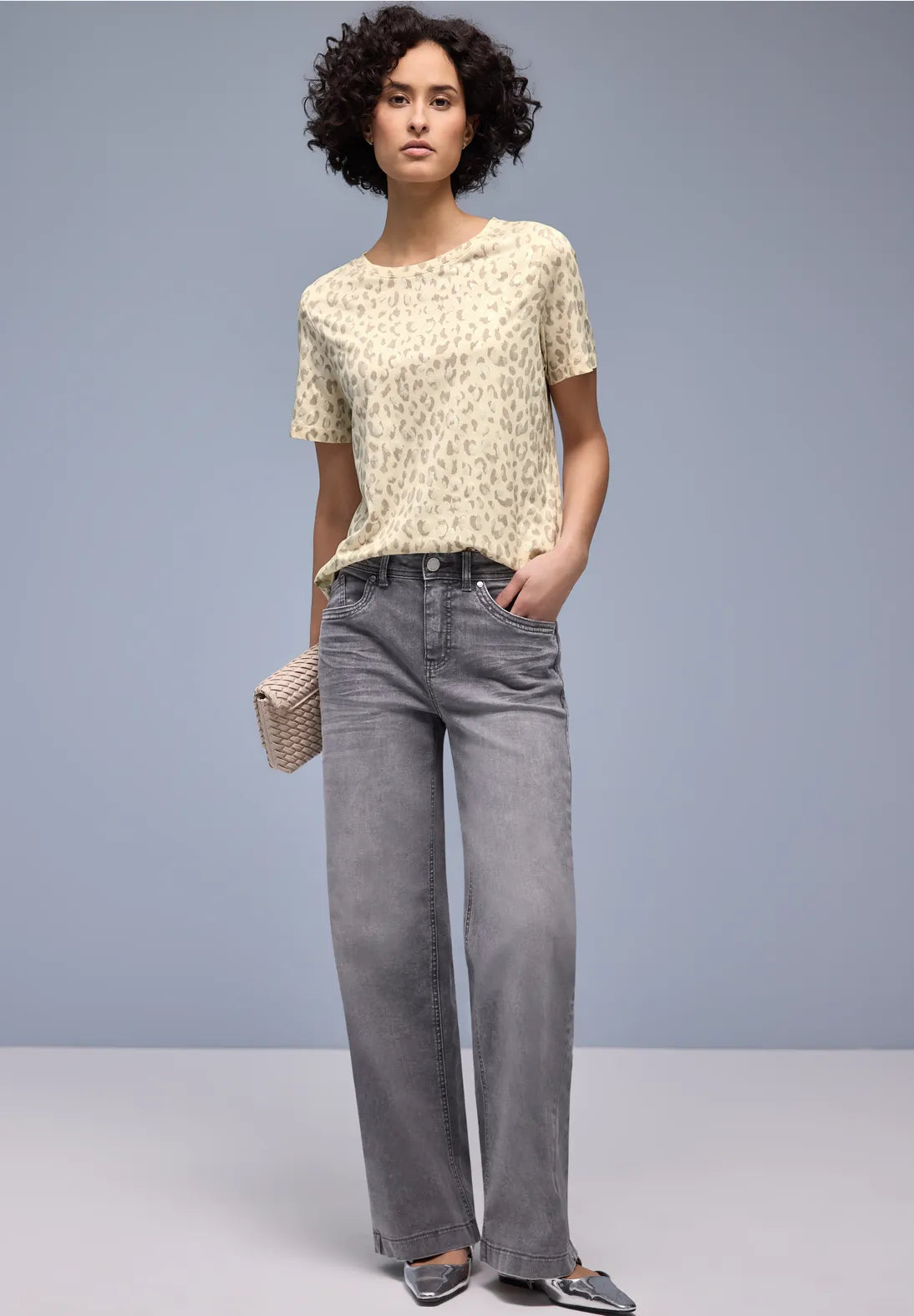 This jersey shirt from Street One combines a trendy leopard print with subtly shimmering foil details – perfect for adding a stylish touch to everyday life. The soft cotton-modal blend ensures a comfortable feel, while the crew neck completes the look with a relaxed feel. A fashion statement for all leopard print lovers.