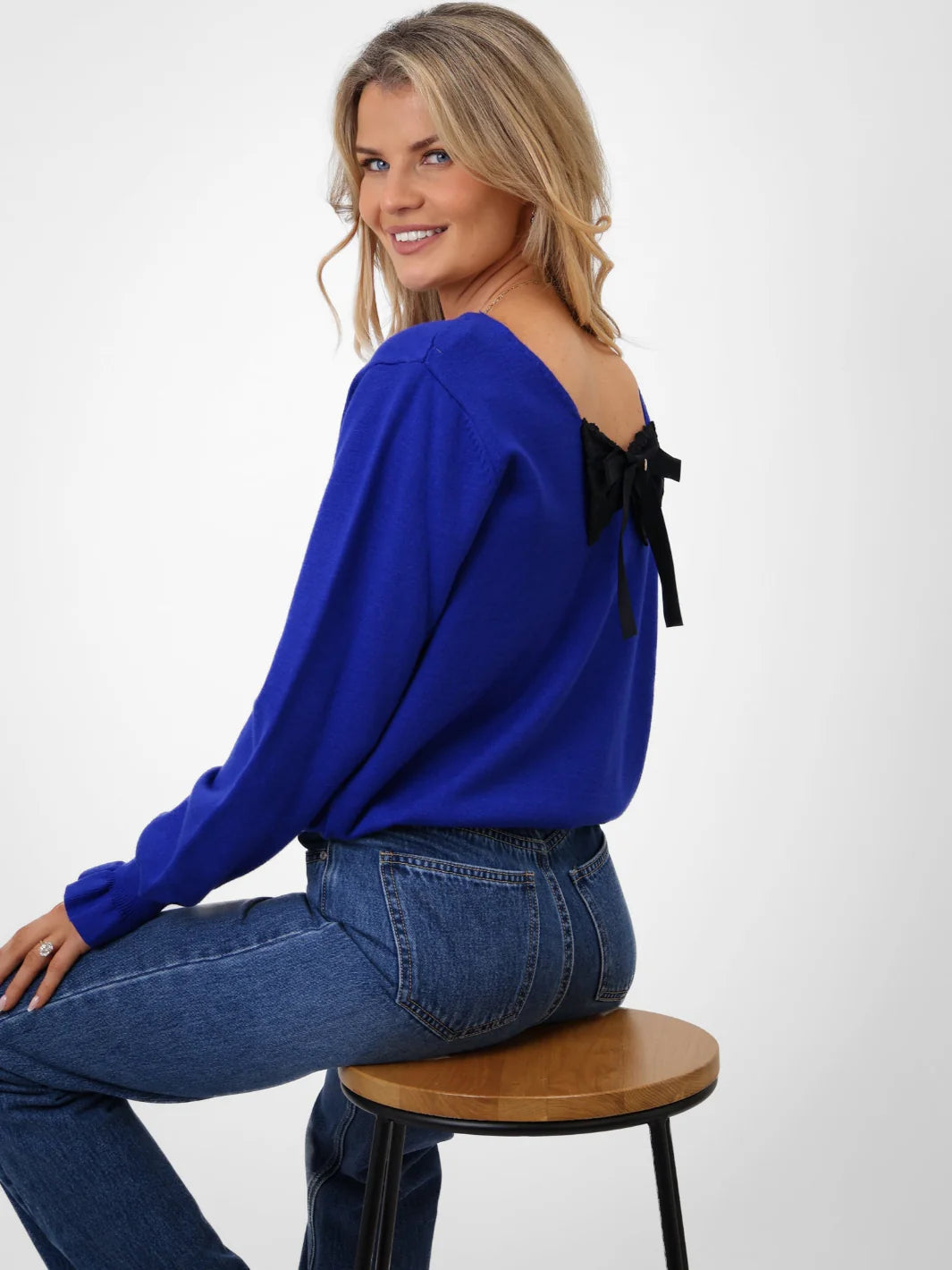 Sweet from every angle, the Bliss Knit brings a playful twist to everyday style. In a striking red, this lightweight knit features feminine frill cuffs and a standout back detail—a delicate hand made black lace bow that adds just the right amount of charm. Perfect for pairing with jeans for a casual day look or dressing up with a skirt for evening plans.