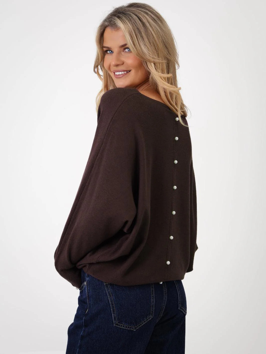 Luxuriously soft with a cashmere feel, the Elba Knit is your perfect blend of comfort and elegance. This batwing-style knit drapes beautifully for a flattering, relaxed silhouette, while the delicate pearl button detail down the back adds a touch of understated glamour. Effortlessly versatile, it’s ideal for pairing with jeans for a chic daytime look or dressing up for an evening out.