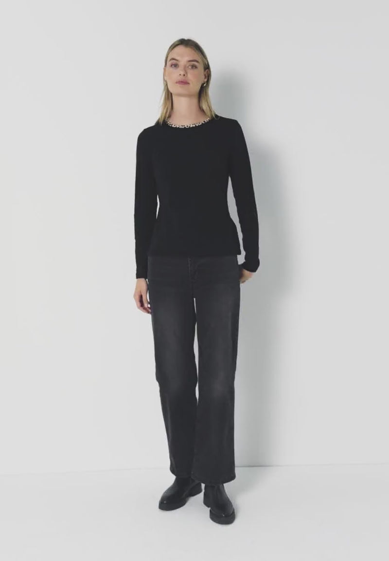 Top w Leopard Print - Black 324189